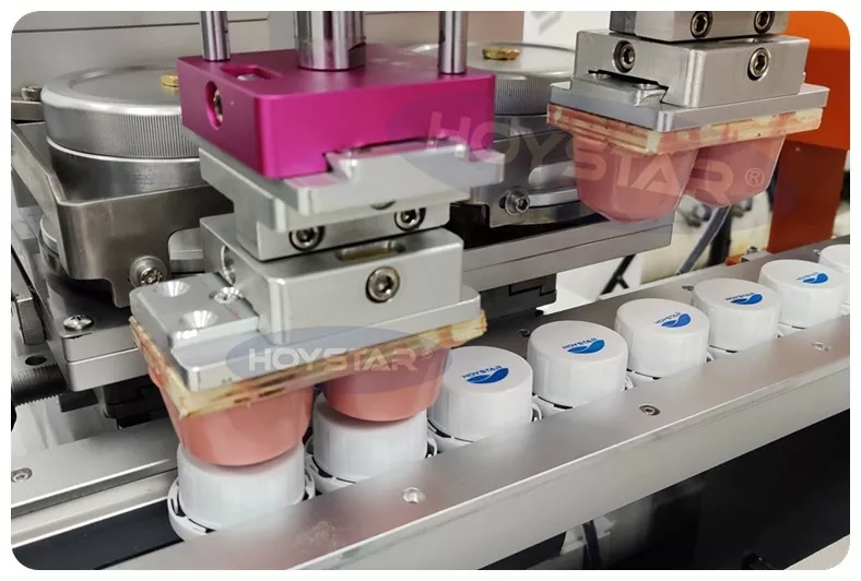 În calitate de producător profesionist din China, ne-ar dori să vă oferim o imprimantă tampon de înaltă eficiență HOYSTAR în 2 culori pentru capace de sticle cu tratament cu plasmă, care este special concepută pentru imprimarea pe capace de sticle. Mașina noastră este complet automată, echipată cu alimentare automată, tratament automat cu plasmă, imprimare automată, uscare automată și descărcare automată. Mașina este foarte ușor de utilizat și are performanțe stabile de imprimare.