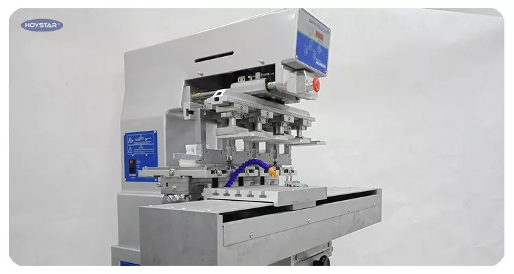 Această imprimantă cu tampon HOYSTAR cu 4 culori cu masă de lucru pentru acoperire este un echipament de imprimare de înaltă capacitate și rentabil. Aparatul oferă o reglare convenabilă, o funcționare stabilă și un efect bun de imprimare. Aparatul oferă o calitate constantă de imprimare și este potrivit pentru imprimarea unei game largi de articole, cum ar fi produse electronice, carcase de plastic, produse hardware, articole de papetărie, arte și meșteșuguri mici, precum și logo-urile mici de pe suprafața cadourilor și multe altele. Poate îndeplini cerințele diverse de imprimare ale clientului.