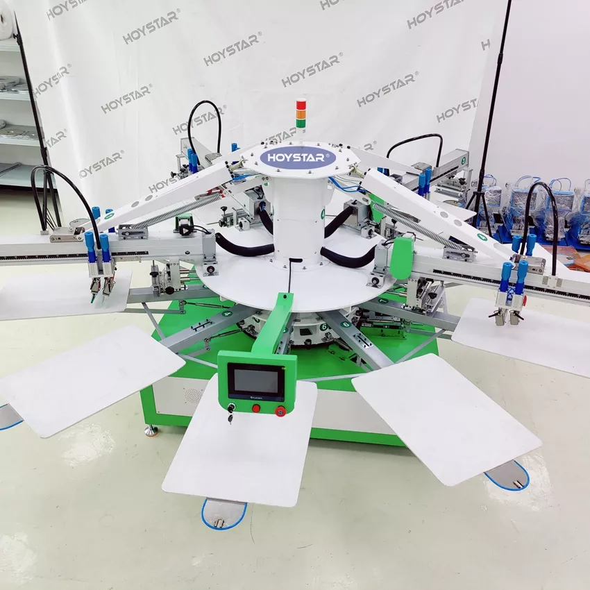Această mașină de tipărit serigrafic pentru tricouri HOYSTAR în 4 culori este concepută special pentru industria tipografică. Echipat cu un microprocesor inteligent, ecran tactil și sistem motorizat, asigură stabilitate ridicată a tipăririi și toleranță la înregistrarea culorilor cu ±0,1 mm, îmbunătățind semnificativ acuratețea și consistența imprimării. Potrivit pentru diverse aplicații de imprimare, cum ar fi tricouri, haine, etichete și țesături. Această imprimantă automată de ecran este soluția dvs. ideală pentru producția de imprimare de înaltă precizie și eficientă.
