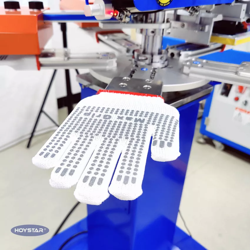 În calitate de producător profesionist din China, ne-ar dori să vă oferim o mașină de imprimare serigrafică cu mănuși antiderapante HOYSTAR rapidă. Mașinile noastre adoptă controlul PLC și ecranul tactil și sunt utilizate în principal pentru imprimarea diferitelor tipuri de mănuși. Aparatul poate imprima pe mănuși de bumbac, mănuși tricotate etc. Mașină echipată cu cuptor de uscare care poate usca bine siliciul și cerneala.