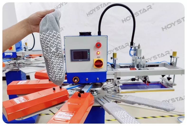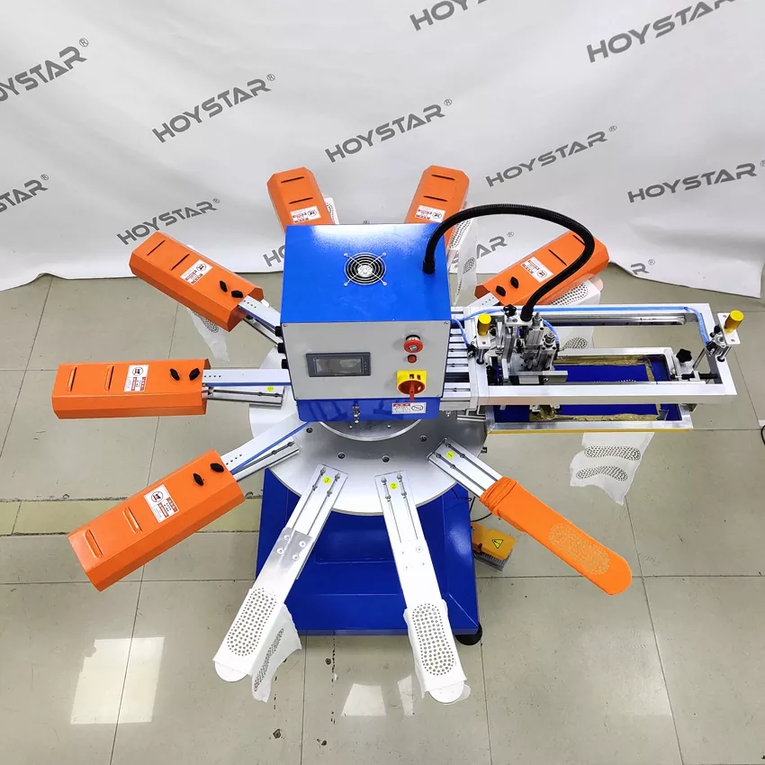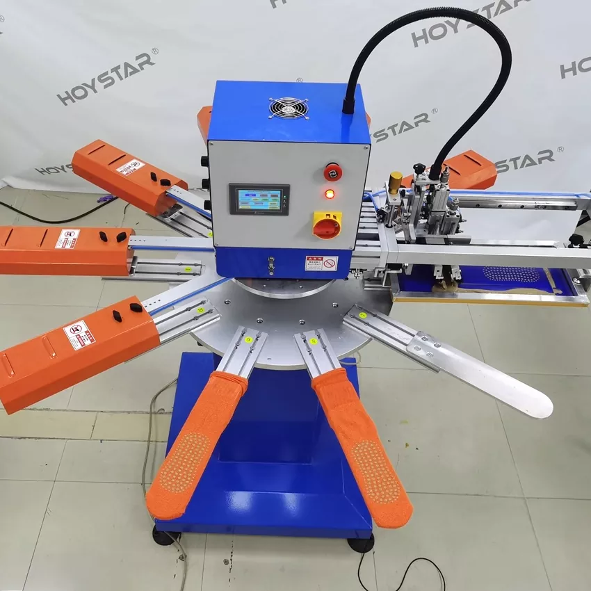 În calitate de producător profesionist din China, am dori să vă oferim o mașină de tipărit serigrafic HOYSTAR rapidă pentru șosete. Mașinile noastre adoptă controlul PLC și ecranul tactil și sunt utilizate în principal pentru imprimarea diferitelor tipuri de șosete. Aparatul poate imprima pe tălpile și călcâiele șosetelor și este echipat cu cuptor de uscare care poate usca bine siliciul și cerneala.